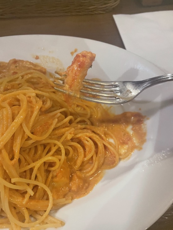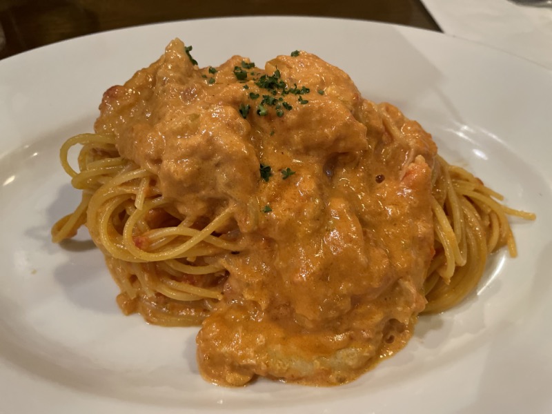 そこまでいうなら食べてみましょう、ズワイガニのトマトクリームスパゲッティを!と食してみると、うん、美味い!濃厚なトマトクリームソースはトマトの酸味とクリームの甘さが絶妙にマリアージュしていてクリームソース好き、トマトソース好きの両方の方に楽しめちゃいます。
