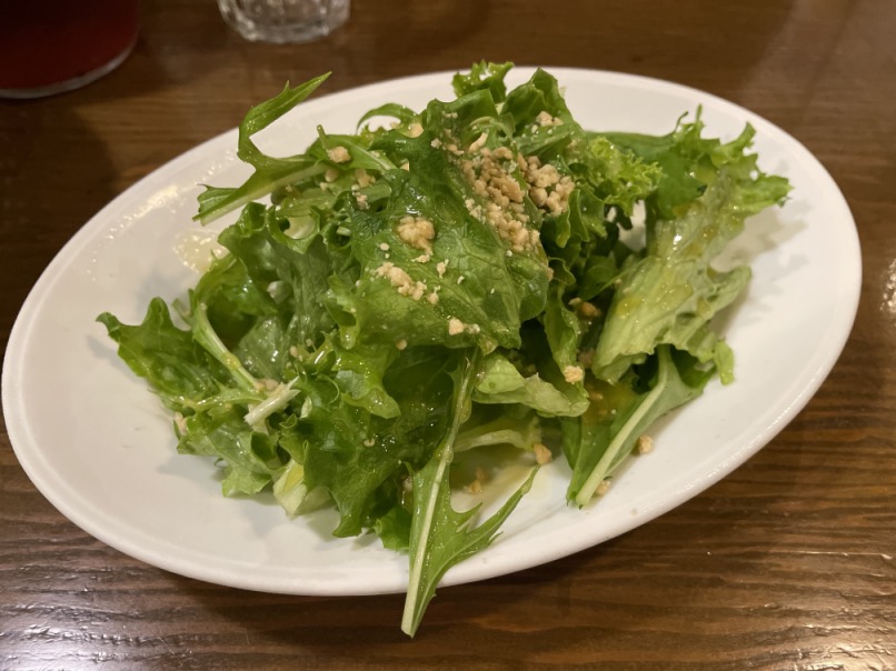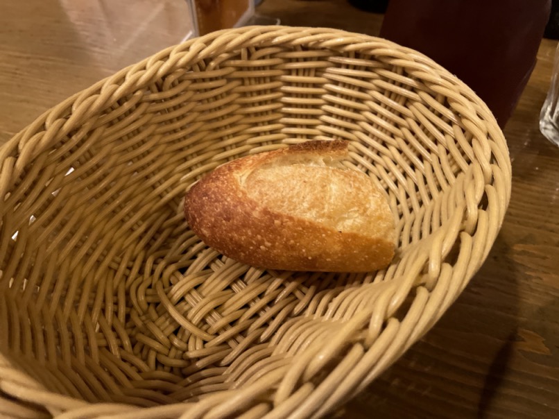 これにサラダとバケットがついてくるのですが、パスタを食べきっても余ってしまう大量のカニクリームソースとカニの身をバケットに乗せて食べるとまた違った料理を楽しめる感じで、二度美味しいランチが楽しめちゃいますよ