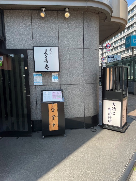 長寿庵は新大橋通りと永代通りの交差点、東京メトロ茅場町駅の出口から徒歩数秒の好立地にお店を構える老舗お蕎麦屋さんです。