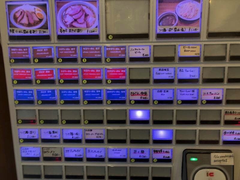 入り口近くに券売機がありますのでそこで購入する形になります。いろいろと種類がありますので事前に頭の中で注文するものを決めておくのをおすすめします。行列ができているとなんかあわてて本当に食べたいものが注文できないかもしれないですからね。