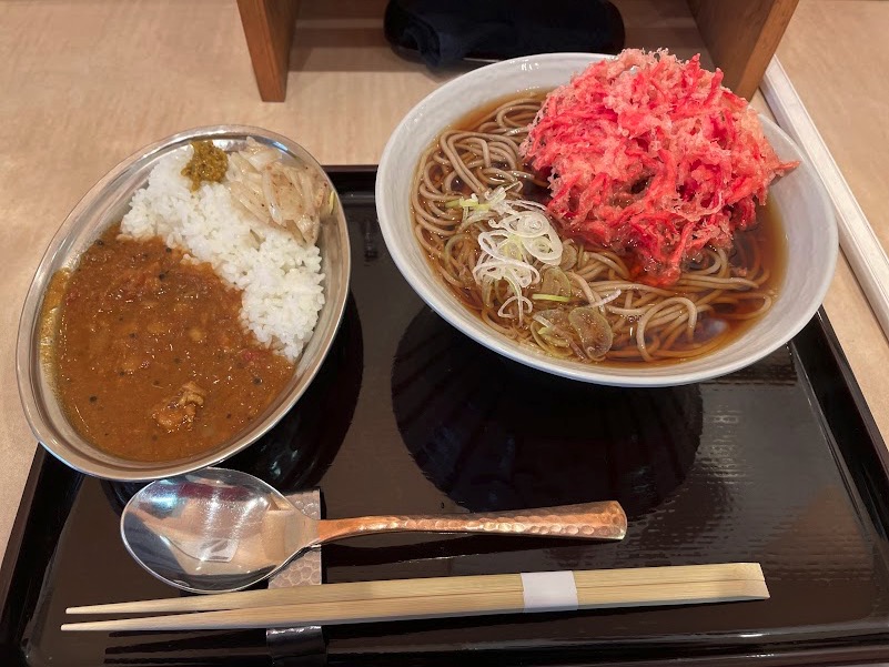 ということで、朝8時なのですが、ミニカレーと紅生姜のかき揚げそばを注文。本気です。