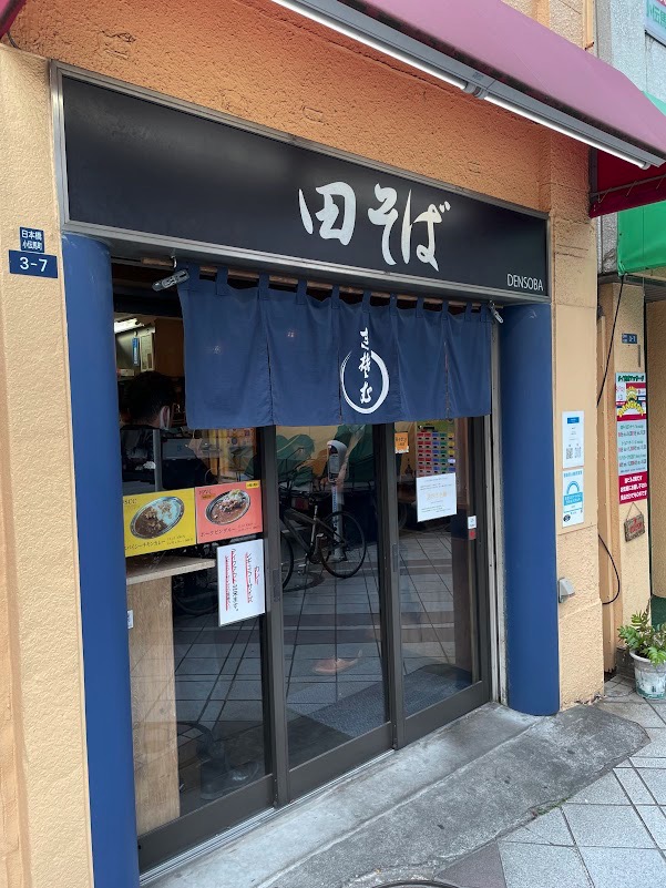人形町住民なので人形町の立ち食いそば、と表現してしまいましたが、まあ人形町からも行けなくはないです。人形町の小伝馬町よりの交差点から徒歩9分ぐらいで田そば(でんそば) にはつくことができますよ。