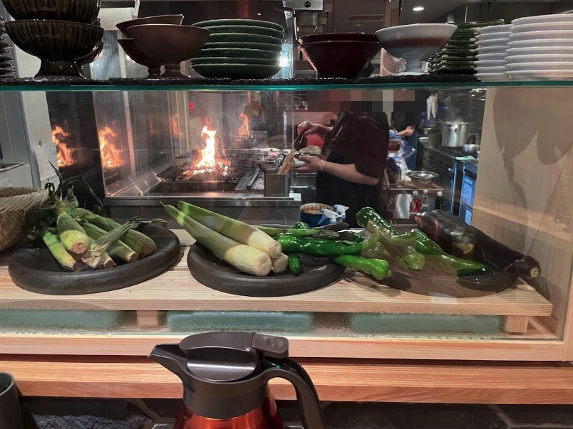 『一天張』は焼き⿃や九州野菜・海産品を堪能できる酒場です。1階には野菜や海鮮が入ったショーケースや、炭火焼き台が並び、立ち飲みしながら調理のライブ感も味わえます。2階ではテーブル席に座って、見た目も美しいコース料理をお楽しみいただけます。自分なりの楽しみ方をチョイスして”最高にちょうどいい”を目から舌からご堪能ください