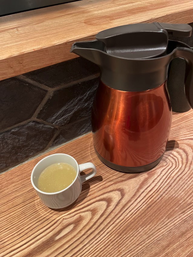 締めで温かい鶏スープを頂きました。(無料)