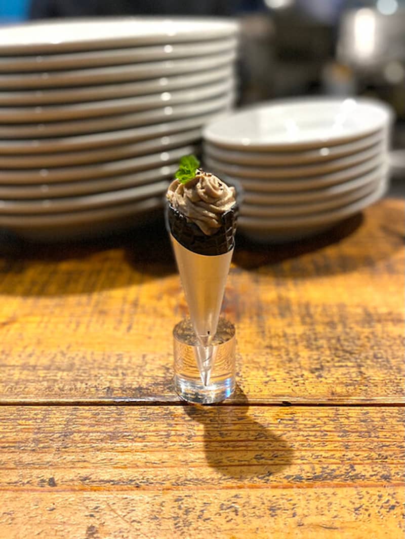 いつもなら人形町でいただきますが、久々に浜町で晩ご飯をいただき、それでは一杯行くかと訪れたのは晩ご飯をいただいたお店から近い清州橋通りと新大橋通りが交差する浜町中ノ橋交差点で営むこちらの立ち飲みビストロ、富士屋本店さん。一人で伺ったので 何とか隙間に入り込み セーフ、すぐに ファーストドリンクをとメニューを拝見しグラスのカヴァをお願いし目の前のカウンター内ではシェフたちが忙しそうにしていてこれがまた臨場感があっていい雰囲気。おかわりのグラスワインを頂戴しおつまみは、鶏レバーのムースとボタン海老のタルタル、マッシュルームのサラダなどワインが進むラインナップが充実しているので若者たちに交じりカウンターでの一時を楽しませていただきました。