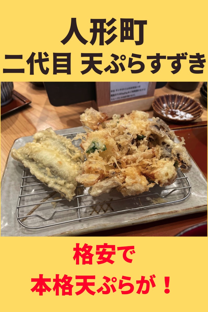 二代目 天ぷらすずきは人形町の水天宮近くの交差点にある天ぷら専門店です。注文するとその場で上げて1品1品天ぷらを提供してくれる本格的なお店なのに、かなりリーズナブルだということで行列が絶えません。