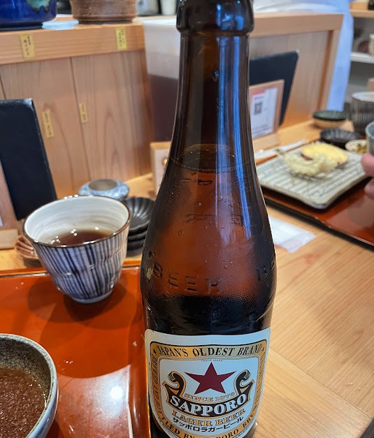 天つゆもありましたが、塩でいただくことに。揚げたてのえび天が塩によく合います。そしてビールに合うんです!