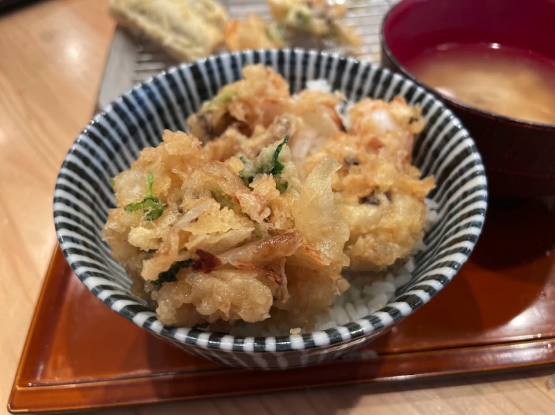かき揚げは丼にしてみました。ご飯を残しておいて正解(と思ったら、おかわり自由でした)